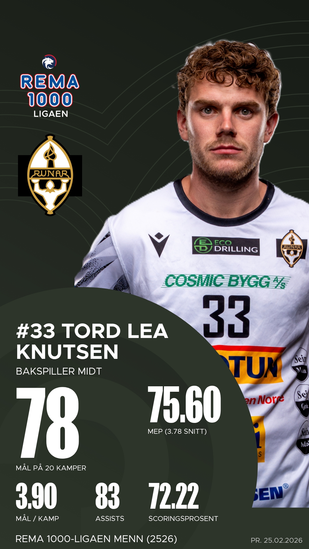 Hos Runar var Daniel Blomgren lagets mest produktive med åtte mål og ni assists, mens Tord Lea Knutsen fulgte tett bak med fem scoringer og hele elleve målgivende pasninger. Christoffer Rambo var som vanlig en sentral profil med sju mål fra distanse.