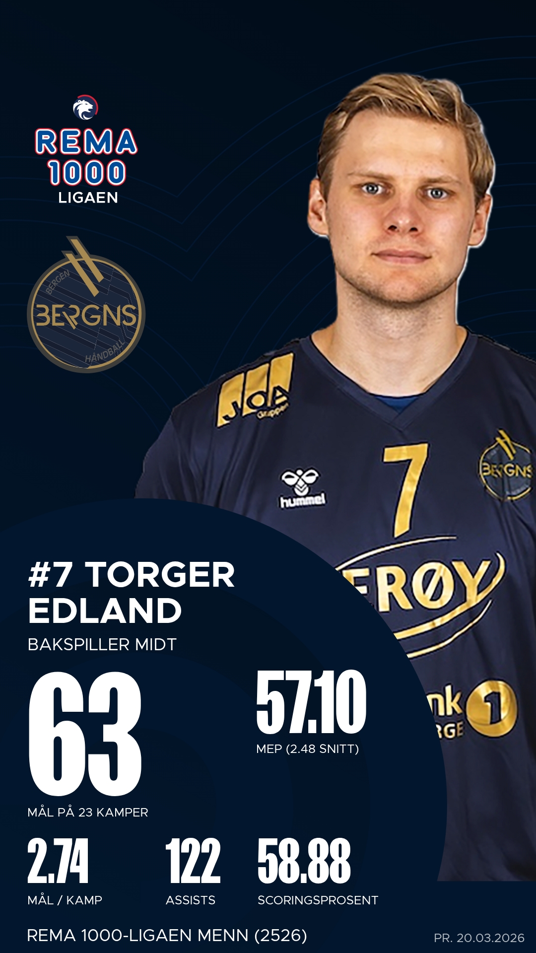 For hjemmelaget er det spesielt tre spillere som har vært toneangivende denne sesongen. Bakspiller Ciljan Sagosen har vært en motor i laget med over hundre scoringer og et tosifret antall målgivende i nesten hver kamp. Han styrer angrepsspillet med klokskap og tempo. Playmaker Torger Edland har vært like viktig – hans presise pasninger og evne til å lese forsvar gjør ham til en konstant trussel. På venstrekanten har Jon Obrestad Salte levert stødig, med høy scoringsprosent og evne til å sette fart i kontringsspillet. Sammen utgjør disse tre kjernen i et offensivt maskineri som få lag klarer å stoppe.